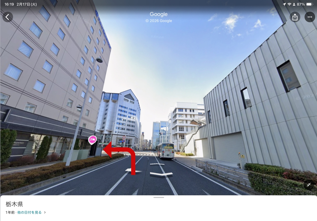 宇都宮駅東口のロータリーから2回しか曲がらずにアクセスできるルートになります。